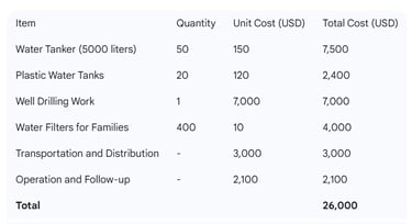 Goal: Aims to provide clean and safe drinking water for internally displaced persons (IDPs) in Sudan through qualitative and rapid interventions that meet the minimum needs of families in return areas or camps.